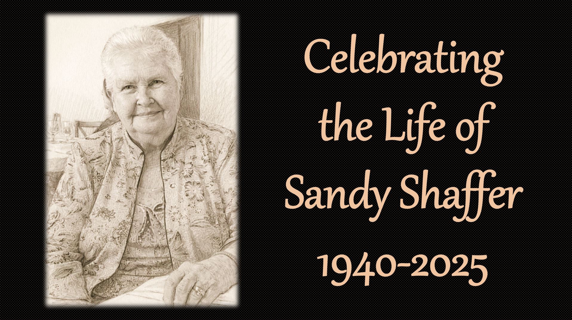 Sandra “Sandy” Shaffer, co-founder of Son Shine Ministries, passed on to be with the Lord on Monday afternoon, December 15, 2025, at the age of 85. Her passing was peaceful, and her family was with her. While there is real sadness in saying goodbye for now, we are also experiencing a deep and steady joy because of her present reality.